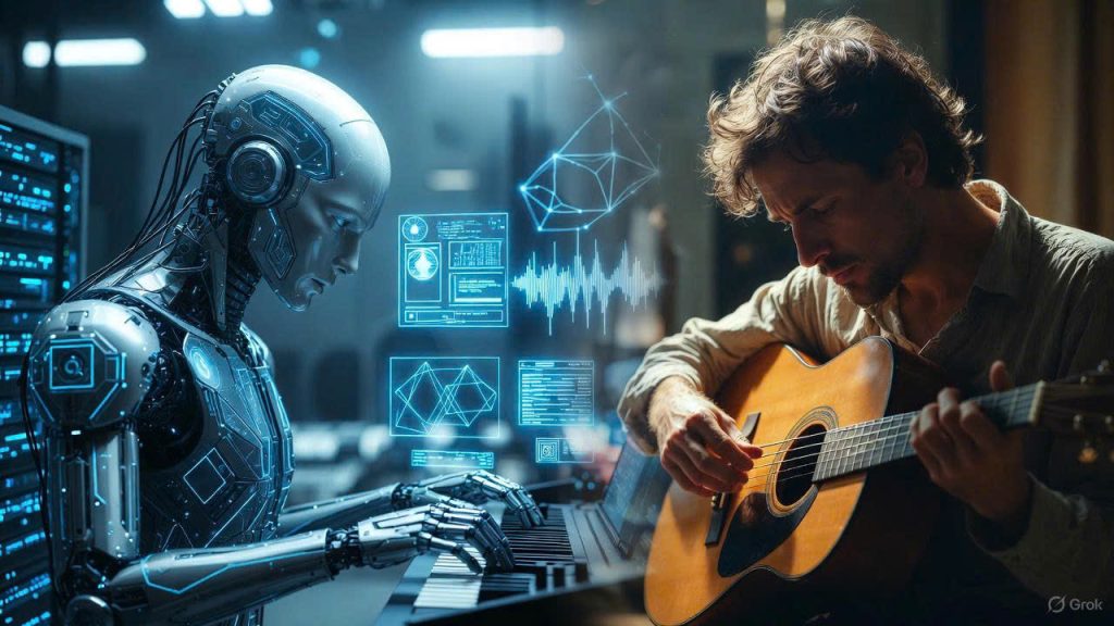 According to Forbes (2025), the global AI music market is projected to reach 6.2 billion USD (Forbes Technology Council). Many independent artists feel they’ve been “dissolved in an ocean of algorithms.” Yet this very reality drives them to rediscover the human soul – something AI can never replicate.